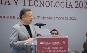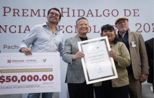 Rosa Ángeles Vázquez García, Jozelin María Soto Alarcón y Aurelio Ramírez Bautista recibieron de manos del gobernador Julio Menchaca Salazar el Premio Hidalgo de Ciencia y Tecnología 2025, un estímulo al talento, la investigación y la innovación de la comunidad científica hidalguense, que forma parte del desarrollo social, educativo y sostenible de la entidad.